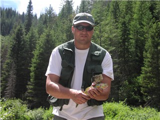 Dennis with a cut - we caught loads of cuts up to 14" and a couple of bull trout around 15-16". |